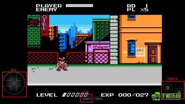 4、通过屏幕左侧区域控制角色移动,屏幕右侧的按钮则分别对应拳击、脚踢以及技能释放功能。