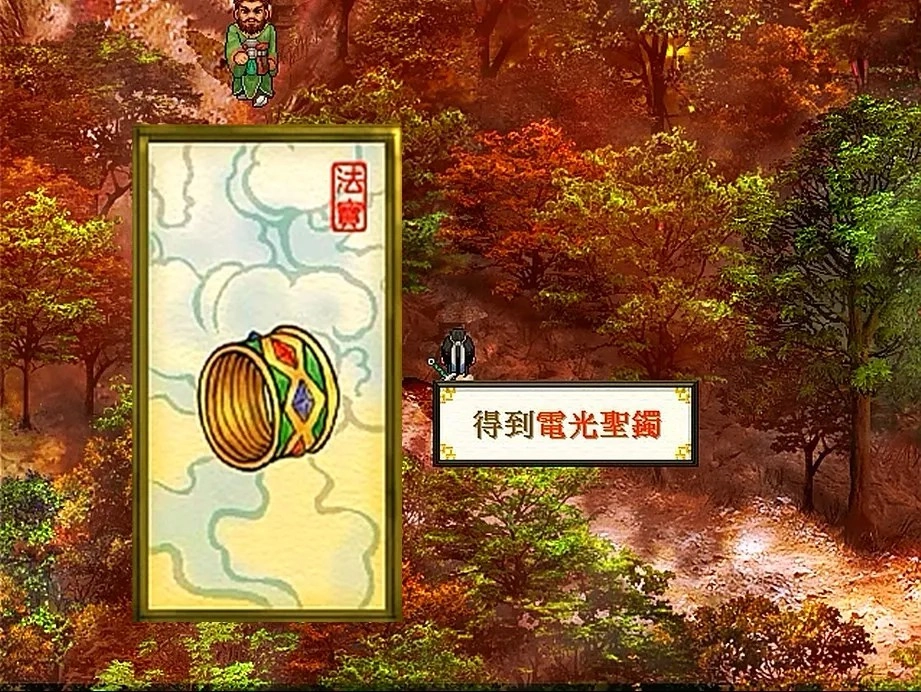 这是游戏里能获取的第一件法宝,进入伏魔山后走下一段阶梯,阶梯旁的树林里藏着个半隐藏的宝箱,眼神好些的人能直接瞧见。可惜小编当年眼神不太好,完美错过了它。