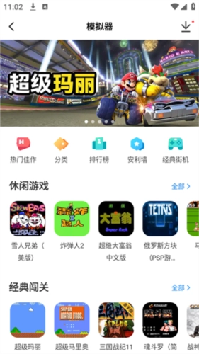4、例如点击“超级玛丽”,然后在游戏页面点击该按钮。