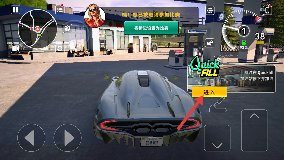 3、在加油站界面点击【进入】按钮,完成加油流程,确保车辆能够正常行驶。