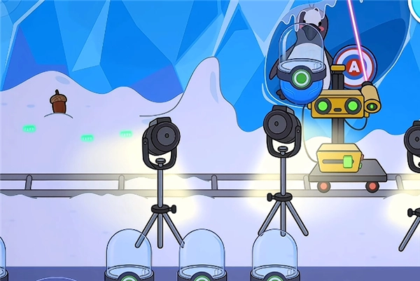 4、比如在这里,小编拖动激光让冰块融化后,就能看到长毛象和小企鹅啦;