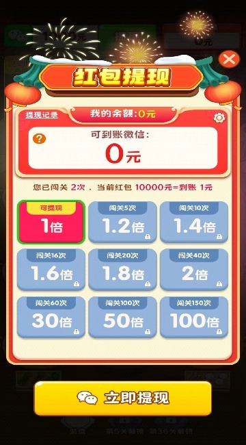 2、第一关顺利通过,完成6个订单,获取了红包奖励。