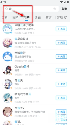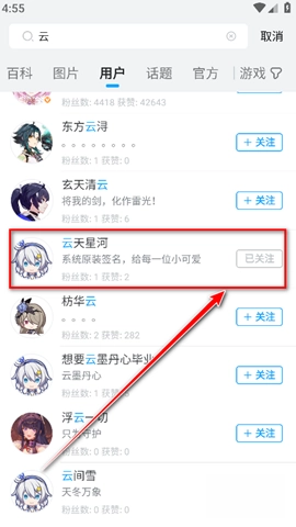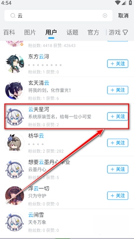 3、找到好友的账号后,点击“加关注”按钮。
