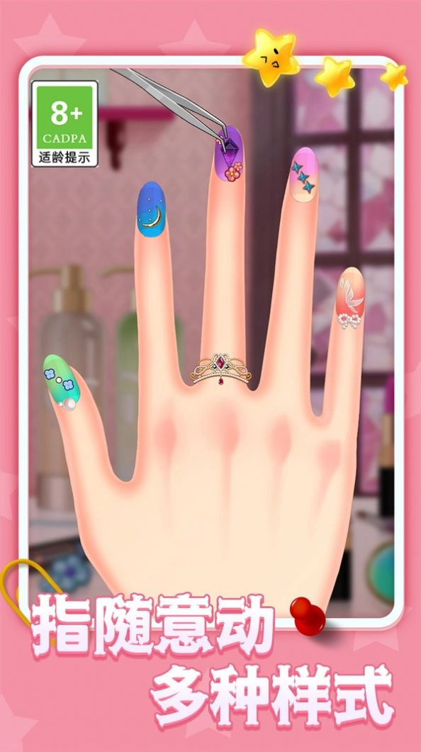 丰富美甲元素,提供多样指甲油、贴纸、饰品等,供玩家自由搭配;