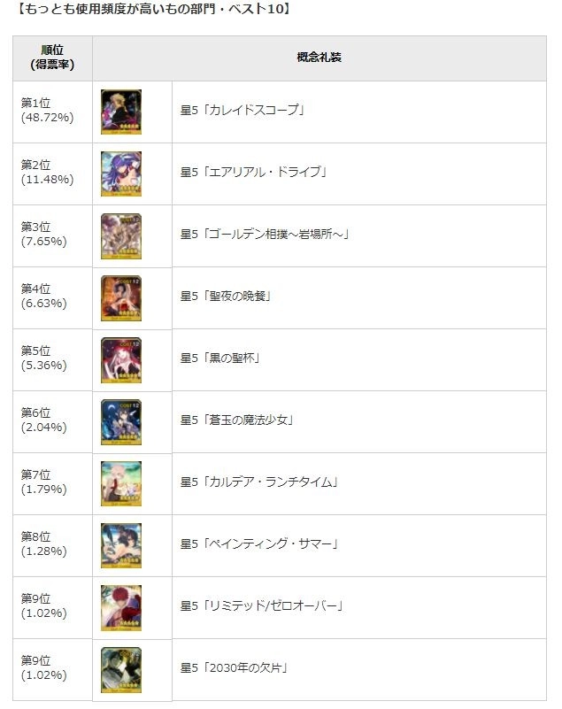使用频率最高的礼装前十位