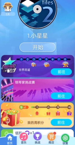 打开钢琴块2,点击开始游戏,选择游戏模式,这里提供经典、世界民间、钢琴家挑战等模式。