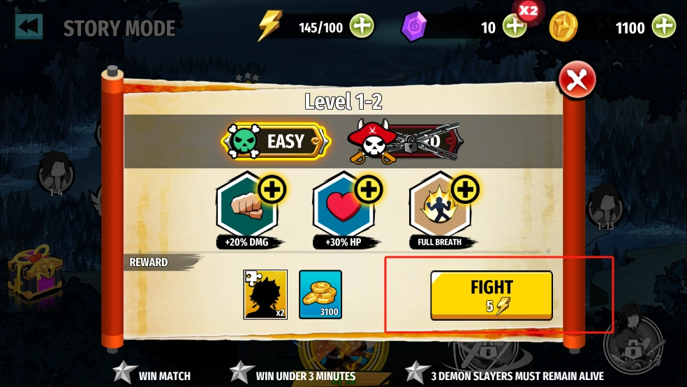 进入游戏开始战斗,每局战斗都会消耗体能;