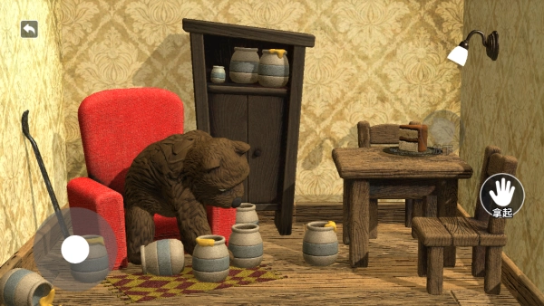 这是一款以物理动作为核心的策略闯关游戏,玩家需要操控一只因饥饿而行动笨拙的棕熊,在布满障碍的室内场景中完成移动任务。