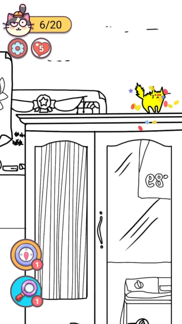 有些小猫会藏在隐蔽的角落里,你得十分仔细地找出它们的藏身之处,再通过点击来给它们上色,这样就能更容易分辨了。