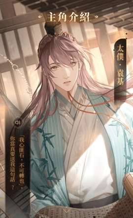 袁基表面上温润如玉,实则是个反派,属于典型的“白切黑”。他在剧情中扮演着幕后推手的角色,和玩家所饰演的角色有着许多剧情上的互动。