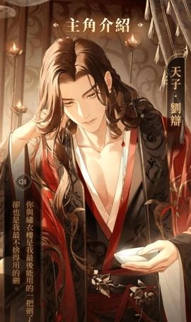 在游戏设定里,刘辩是个被架空权力、幽禁深宫的傀儡天子,自幼便失去了自由,是位命运悲戚的美男子。他性格偏执又带着几分疯狂,对女主角怀有深切的情意,日常的言行之间,处处都流露着对她的关切与呵护。