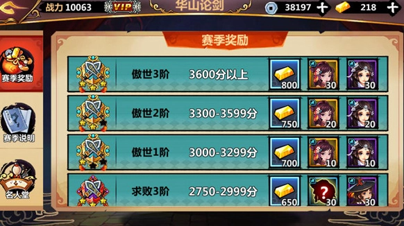 华山论剑不仅能检验你的实力,还有丰厚奖励!每日参与特定场次,可领取对应的金砖与铜钱;每周达成一定胜场,能获得相应金砖和随机侠客碎片。此外,还有一个重磅福利——赛季奖励!