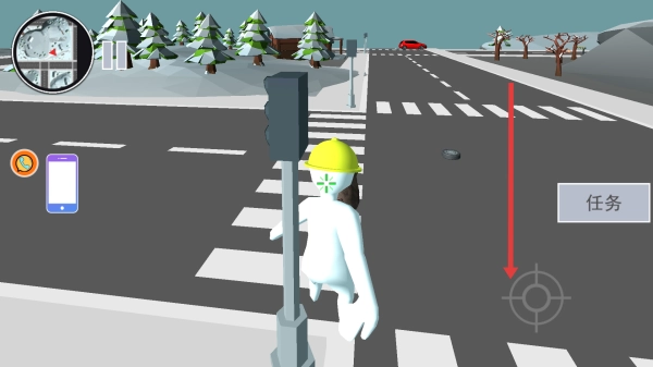 开局开始操控像素人前进,跟随地图红点指引移动,利用虚拟摇杆控制角色,靠近任务目标时适时攻击。