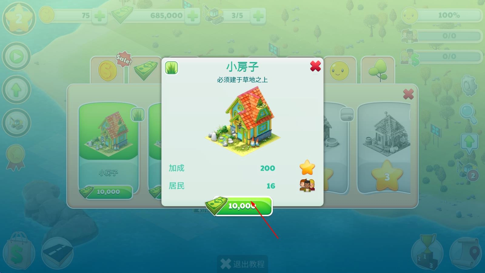 游戏进行中,通过合理布局建筑物获取金币,用收益解锁更多建筑类型,拓展城镇规模,同时改善设施提升居民生活水平。