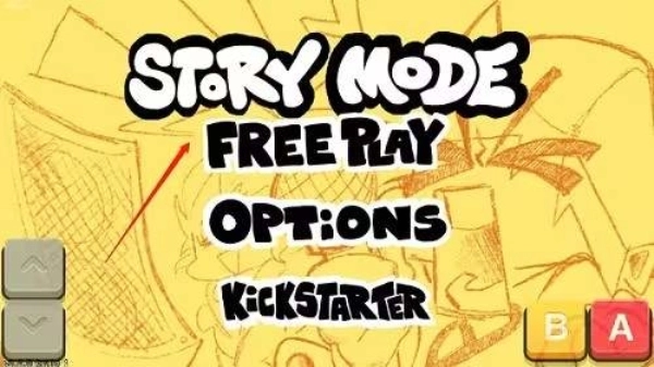 2、如图所示,通过点击左侧的上下按键来选择故事模式,然后点击右侧的A键完成确认操作。