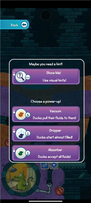 你可以挑选要挑战的关卡,界面上有两种不同的玩法模式:一种是常规模式,要求把水分配给鸭子;另一种则是特殊模式,要避免鸭子接触到水。