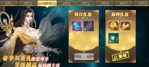 另一个是每天登录就能领取的礼包,赶紧提升VIP等级来领取丰厚好礼吧~