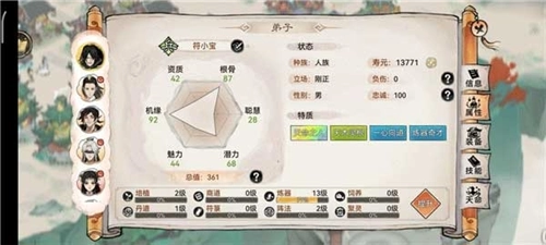 弟子升级时,属性中的根骨和资质是需要重点留意的。根骨数值越高,炼体的进度就会更迅速;而资质越好,服用丹药后修为提升的效率也越高,这样能避免不必要的浪费。