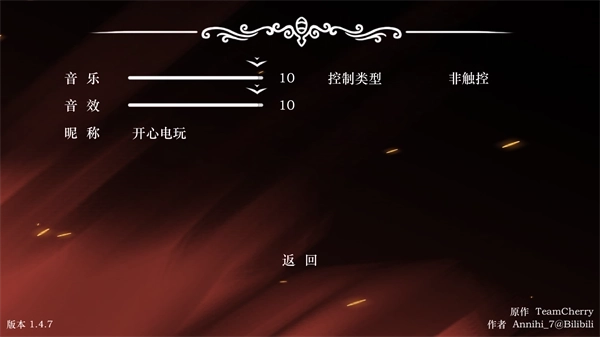 2、点击进入设置界面,你可以在此自由调整游戏的音乐音效与操作方式,操作方式包含摇杆、按键和非触控模式,同时还能修改自己的昵称,该昵称会在主页和游戏中显示。
