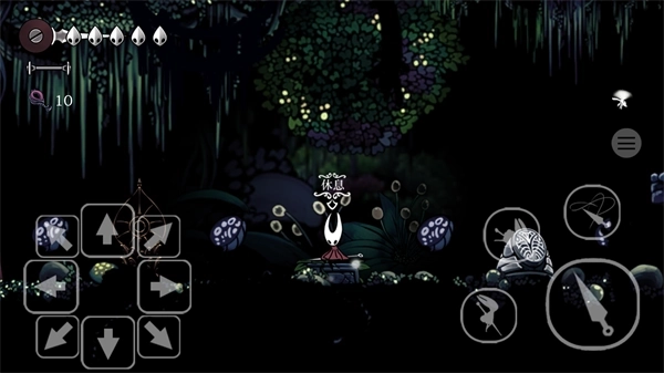 6、进入游戏后,你就能操控骑士小姐姐开启冒险之旅啦,左侧的摇杆可用于控制移动方向,右侧则分布着跳跃、冲刺、攻击以及技能“丝线乱舞”这几个操作按钮。