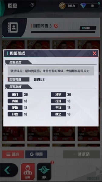 此外,当图鉴激活后,玩家能够获取相应的图鉴值,这些图鉴值可用于提升图鉴等级。每提升一级,玩家就能得到三维属性方面的加成。而且,图鉴等级越高,对属性的增幅效果就越显著。高等级的图鉴会让玩家的战力得到大幅提升,这对于主线推图以及球队竞技都有着十分不错的帮助,是游戏中后期提升战力时性价比很高的一种选择。