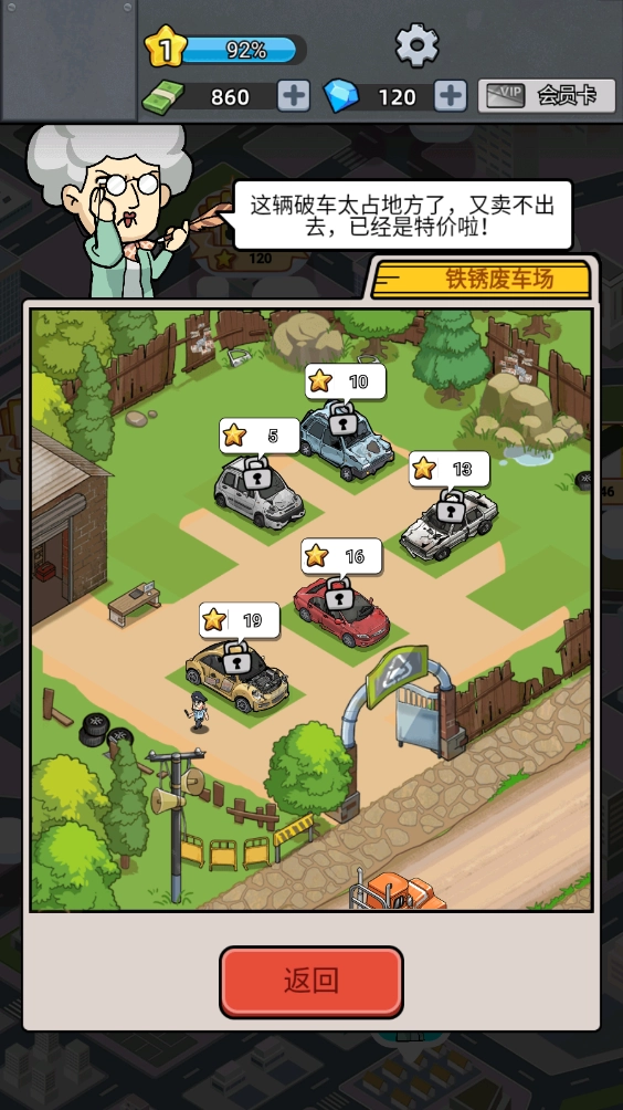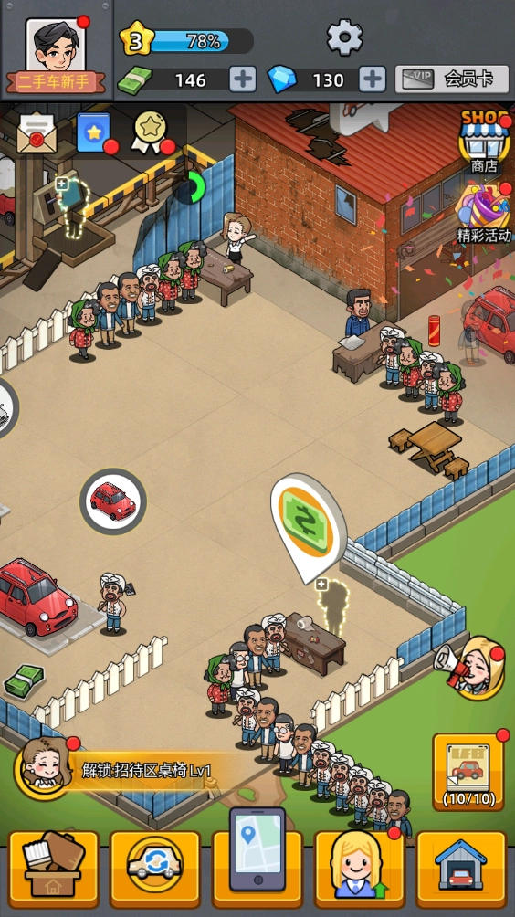 店铺的主题设定相当鲜明,单是围绕二手车展开的主题设计就已经形成了一定的记忆点。游戏过程中虽存在一些不太友好的数值设定或引导玩家观看广告的环节,但整体体验仍能给到合理反馈,思路也比较清晰,属于一款普通但可玩的休闲游戏。
