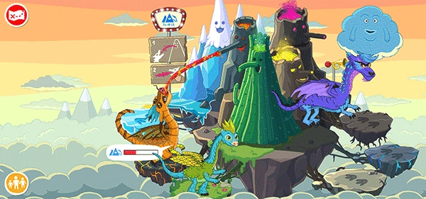 7、最后一站是小龙们的休息区,点击小房子左下角的红色小龙图标,就能给它们的小窝增添一些装饰啦!