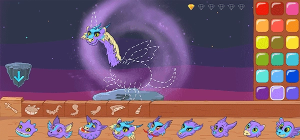 6、抵达加油站,给体力不支的小龙们补充能量,只需把它们拖拽到对应颜色的石头上。