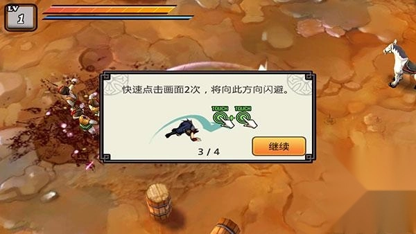 3、快速点击画面2次,将向此方向闪避。