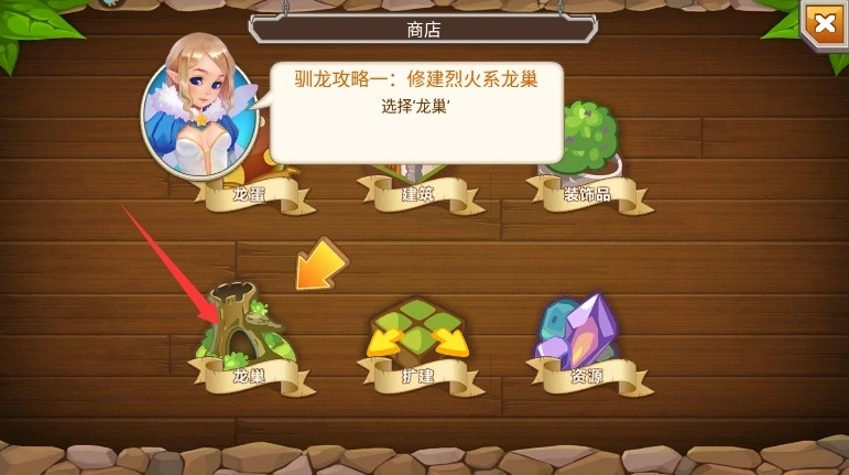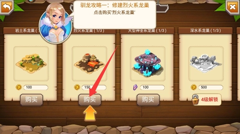 1、进入游戏后,点击商店按钮进入购买界面,然后浏览各类龙巢和培育设施的选项。