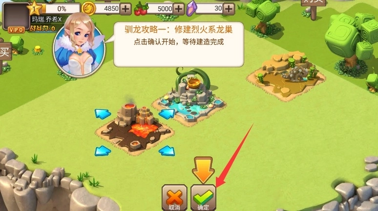 4、回到牧场挑选一块空地来建造龙巢,点击确认后耐心等待建造完成,接着购买龙蛋进行培育就可以了。