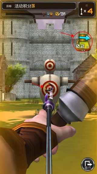 这款游戏采用简单的触摸操控方式,你要在下方的红色方框里拉动弓箭,完成瞄准并射击。