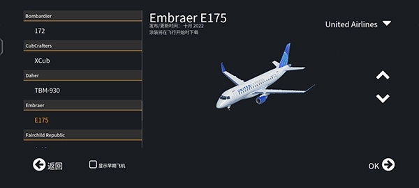2、左边显示的是飞机型号,通过右侧的上下按钮能够切换飞行型号,选好之后点击“OK”即可。