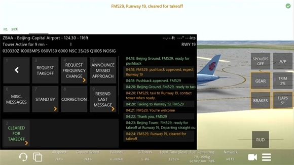 2、完成申请后,塔台会给出回复,此时需仔细查看指令内容,指令中会注明需前往的起飞跑道,随后点击Reply按钮。
