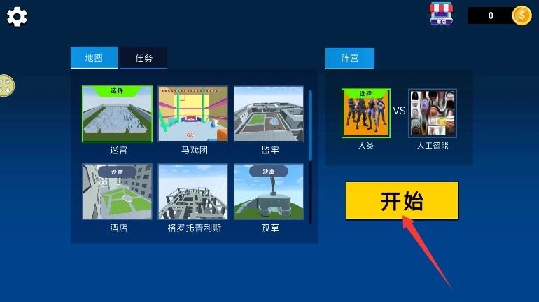 1、进入游戏后,挑选你喜欢的战斗地图和阵营势力,点击开始按钮就能加入紧张刺激的乱斗啦。