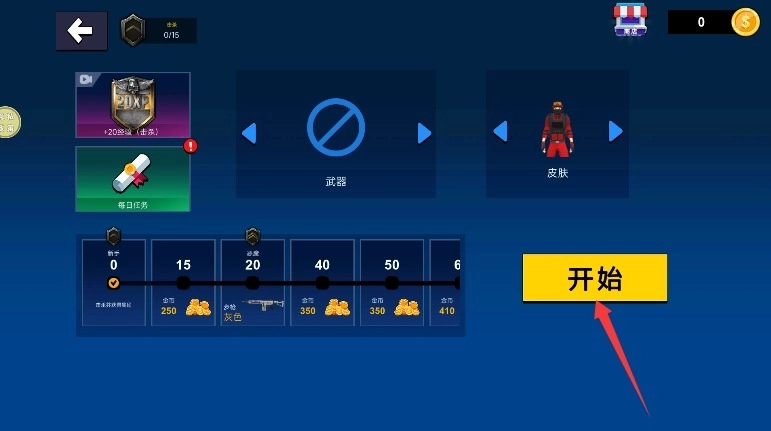 在装备界面挑选主武器与角色皮肤外观,确定好配置后点击准备按钮开启对战。