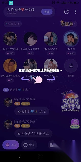 5、操作模式和抖音相近,左右滑动就能快速切换房间啦。