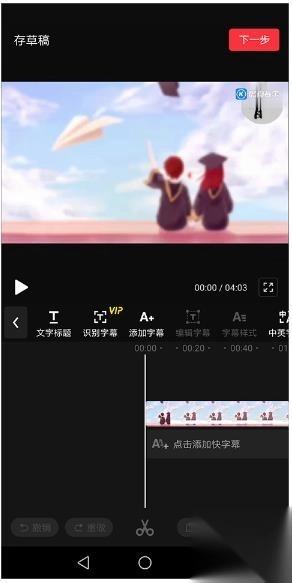 4、若要为视频添加字幕,点击【字幕】,接着选择【添加】字幕并点击。倘若还需执行其他操作,可按顺序依次点击相应操作。添加完毕后,点击右上角的【下一步】。