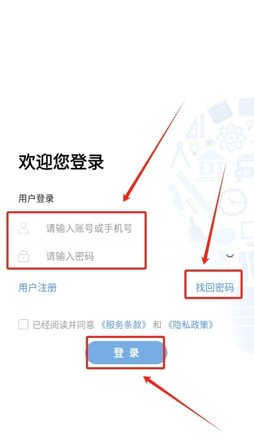 2、进入登录界面,输入注册手机号和密码,点击登录按钮。