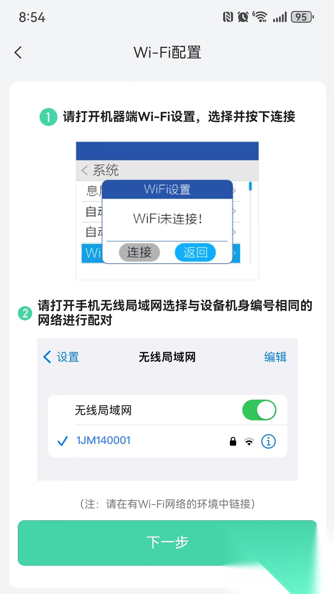 1、首先,会教大家如何将手机与仪器适配,操作挺方便的,通过WiFi进行配置。先打开仪器的连接设置,之后手机连接该配置,就能实现互联了。