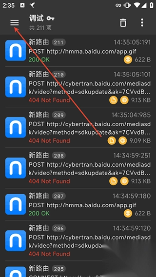 4、如果用户需要抓取https流量数据包则需要安装ca证书,首先需要点击app左上角的扩展功能图标