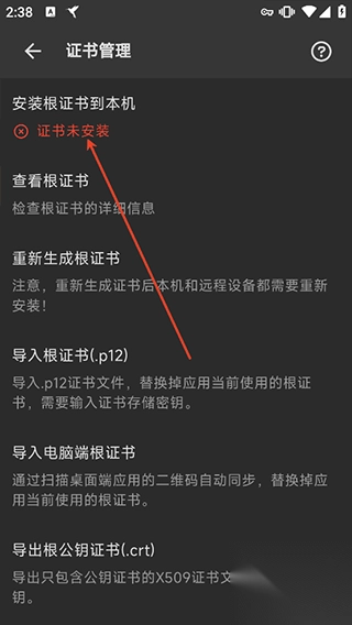 8、此外,若用户不希望远程安装证书,还能够导入手机本地或电脑上的证书来完成安装。不过,在导入之前,依旧需要对手机设备进行root操作。