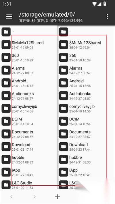 启动应用后,你会看到一系列的文件和文件夹。这些文件可能是应用程序数据、系统文件或其他用户文件。