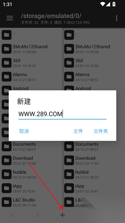 点击主界面下方的“+”号,可以新建文件夹或文件,并选择将其添加到左侧或右侧的目录中。