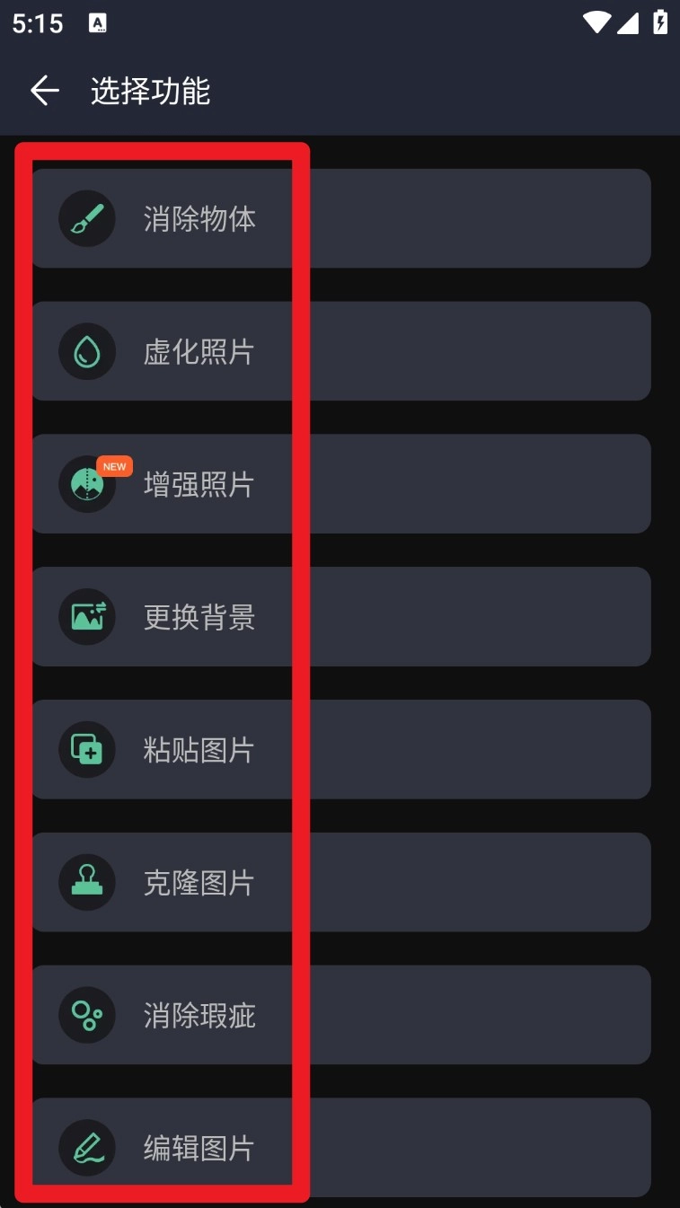 4. 进入功能列表后,可选「消除物体」「增强照片」等多个模块,自由组合使用提升图像效果。