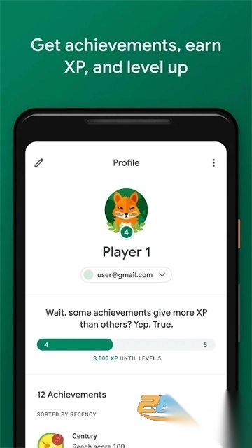1.玩家资料:创建自定义玩家 ID,记录您在各款 Google Play 游戏上赚取的 XP 值和升级情况。