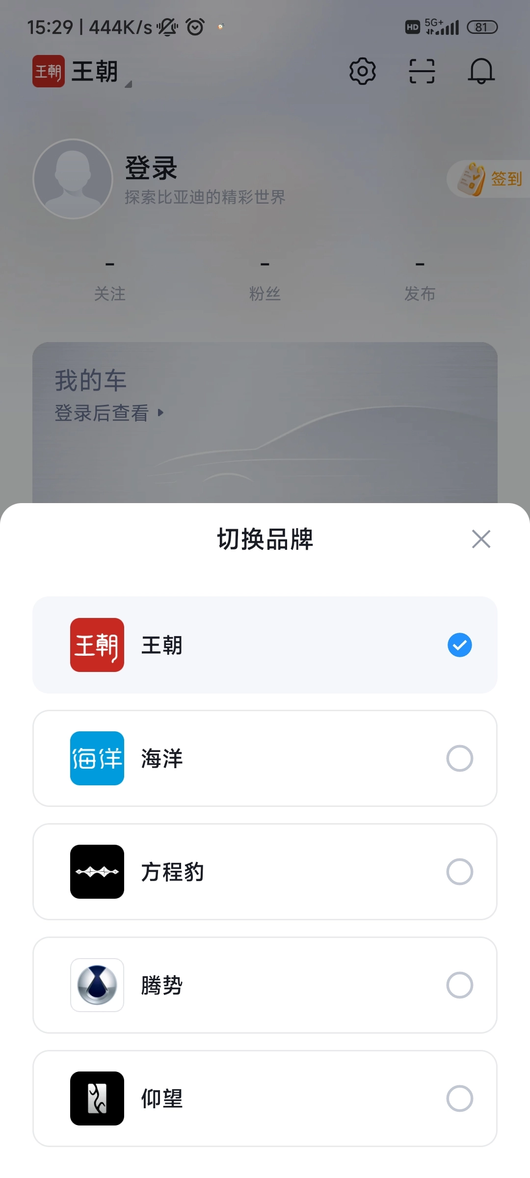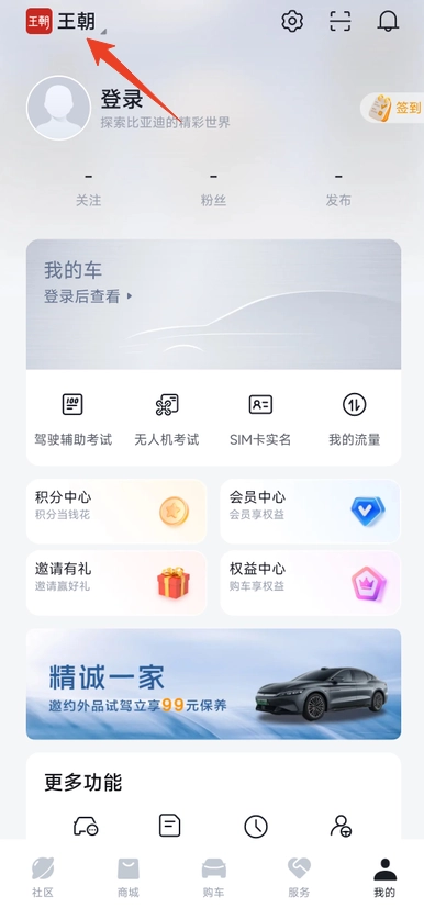1. 开启比亚迪app,轻点【我的】,接着点击左上角。