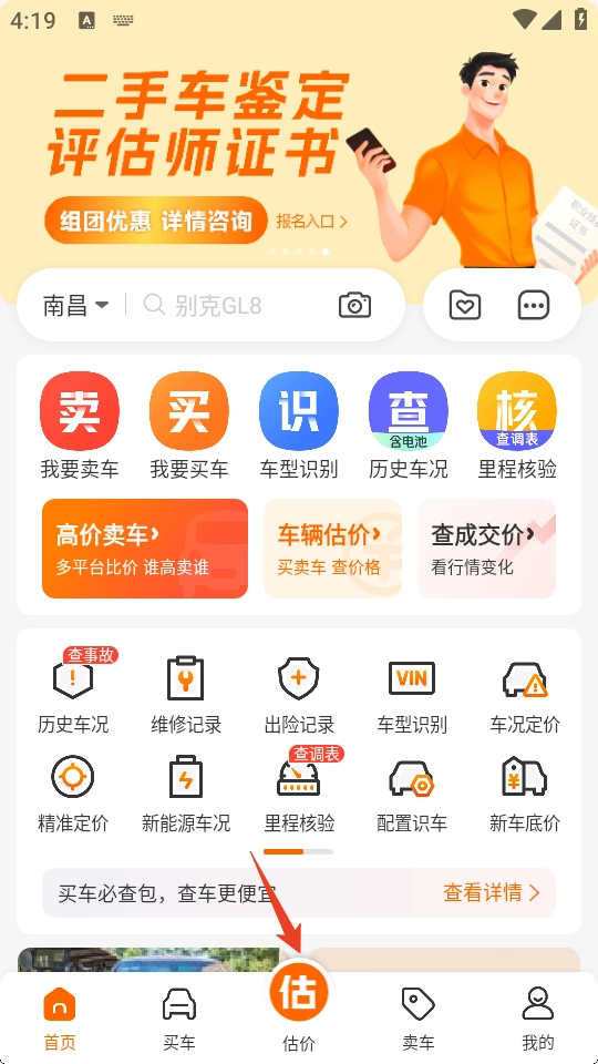 1、打开车300二手车app,点击中间的【估价】
