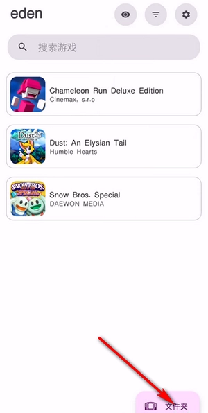打开模拟器后,界面上会显示设备里已有的游戏文件,点击文件夹还能加载更多关联的文件内容。