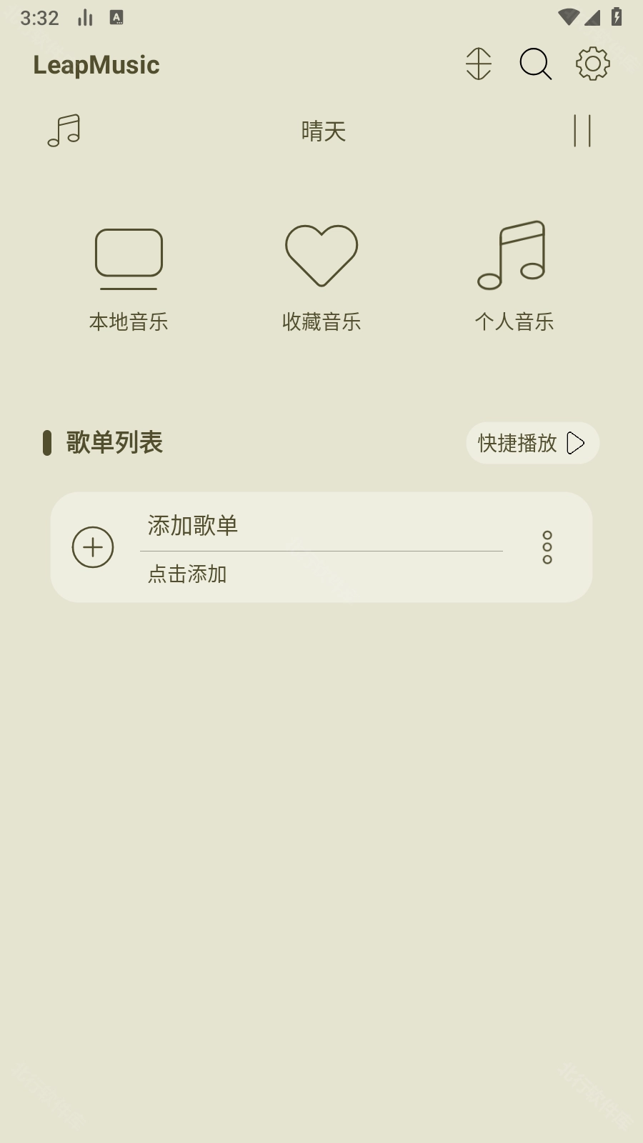 打开LeapMusic应用,进入主页后,点击界面右上方的设置选项。